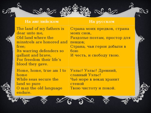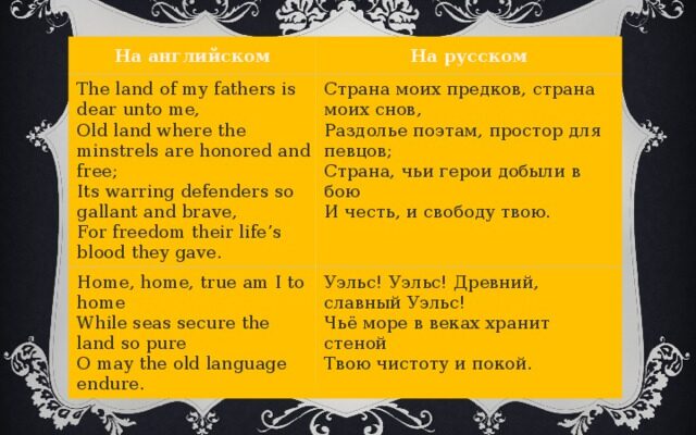 Полный текст гимна «Страна моих отцов»