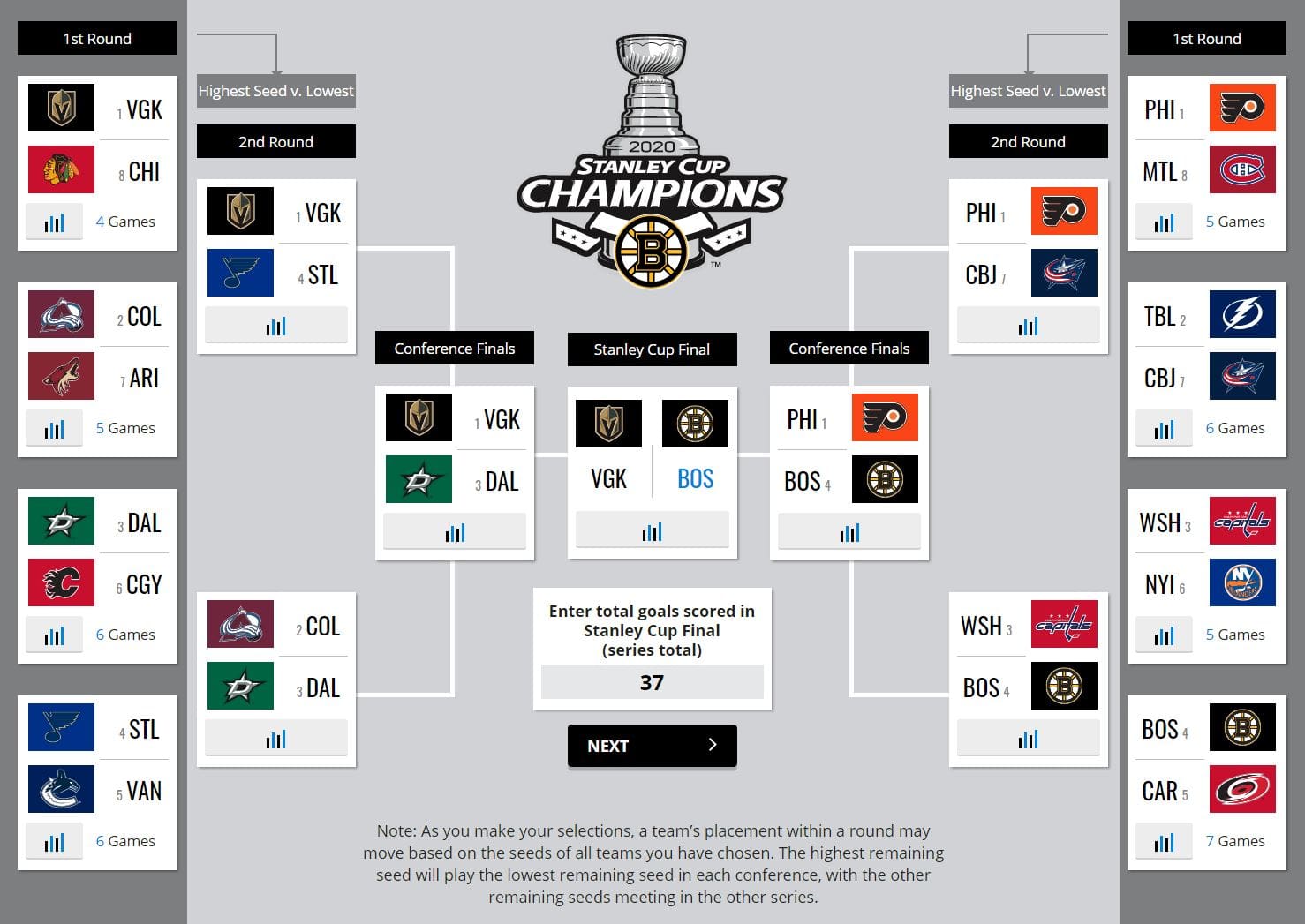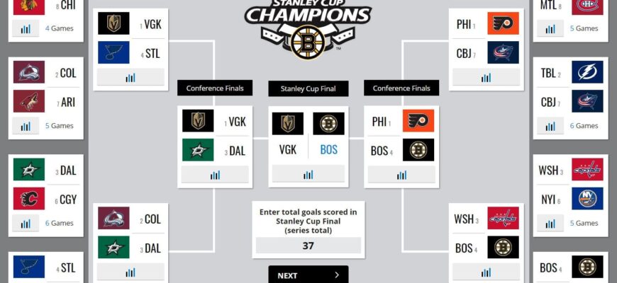Бостон Брюинз | 69 | 23 | N/A | 9 | 77.5 | @ DET (Суббота) | 0.1% | 13 |