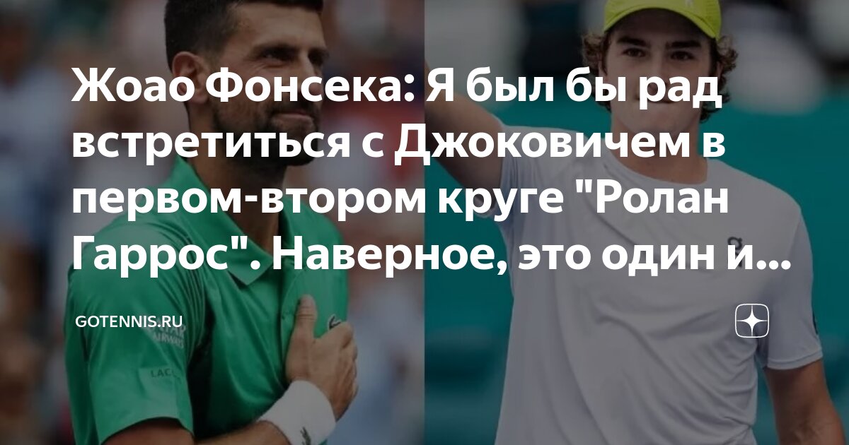 65-я ракетка мира, бразилец Жоао Фонсека, поделился своими мыслями о том, с кем он хотел бы встретиться на корте в рамках грядущего турнира «Ролан Гаррос».